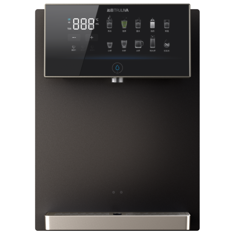 适配≤1200加仑厨下净水器 内置UV杀菌 无忧饮水 全水路无双酚A 炫彩大屏界面 智控一目了然 精准控温控量 适配多种饮品 |