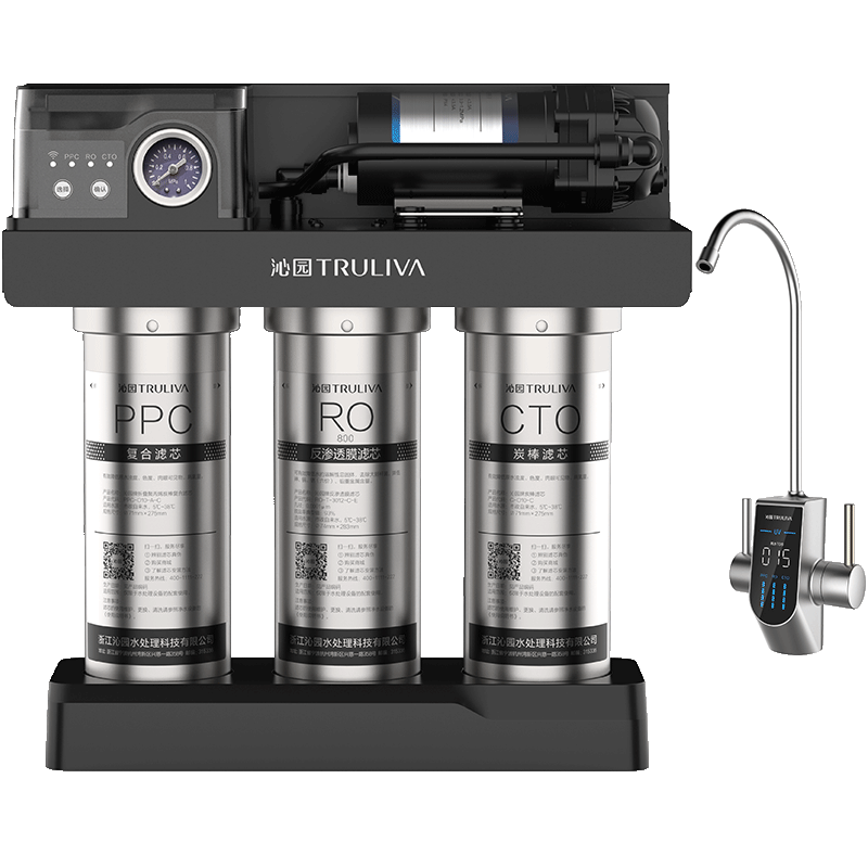 智控纯净系统 1000G澎湃大流量 恒净极滤™科技Pro 智能UV数显龙头 75.9%的产水率* 机身TDS数显 超静音技术* |